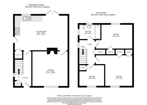 - Three bedrooms and family bathroom, including built-in storage to principal and third bedroom.