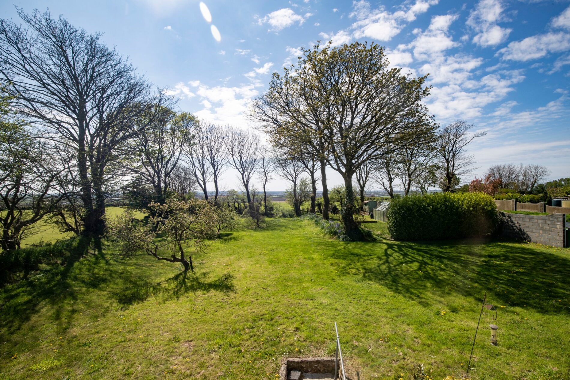 The property offers a private driveway with space for multiple vehicles and access to a detached garage. The front lawn is mainly laid to lawn, with gated access from the road and mature hedging enhancing privacy. The expansive rear garden is laid mainly to lawn with concrete patio areas ideal for outdoor seating. The garden features an array of trees and shrubs with a greenhouse and plenty of potential for further development subject to the necessary planning consent. The plot is bordered by grass banks and trees, with open views over the surrounding countryside and sports field.
