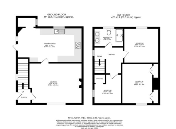 The ground floor is tiled throughout and features a generous lounge arranged around a log burner, creating a well-defined and comfortable reception space. To the rear, the kitchen and dining area is presented in a contemporary style, incorporating integrated appliances, coordinated work surfaces, and complementary splashbacks, with a further log burner providing a strong focal point to the room. The first floor comprises three bedrooms, including two well-proportioned doubles, alongside a third room well suited to use as a single bedroom or home office. The bathroom is finished with modern fittings, featuring a vanity unit with his and hers basins and a walk-in shower with slate-effect detailing.