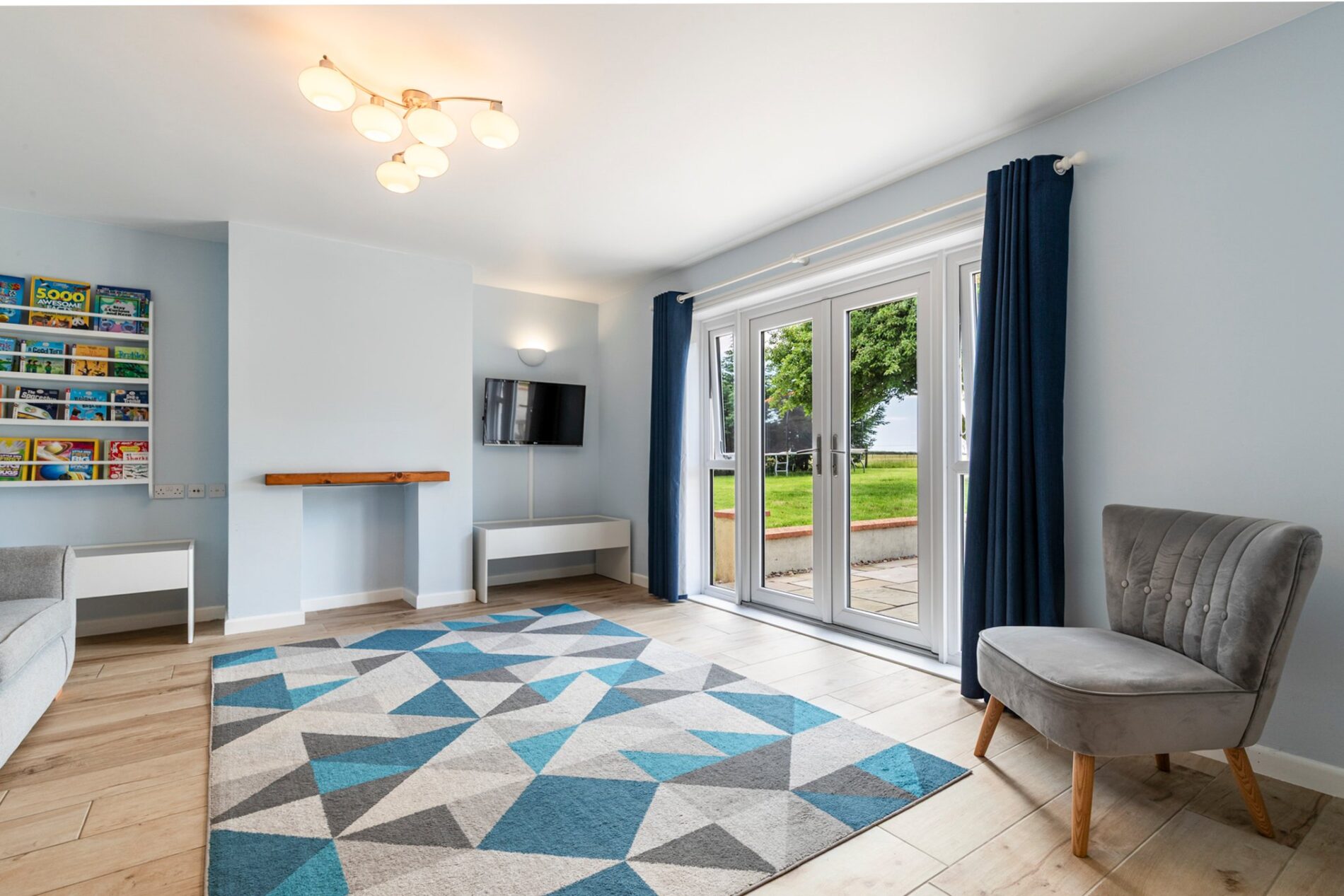 - Stylish interiors including lounge with French doors and modern kitchen/diner with island