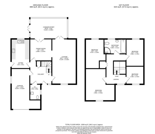 The accommodation is approached via a uPVC front door into a welcoming entrance hallway, complete with useful storage and internal access to the garage. The principal reception room is notably spacious, with scope to create a versatile living area. This flows into a dining room well suited to family gatherings, and further into a conservatory overlooking the rear garden. The kitchen, currently fitted with solid units and work surfaces, provides ample potential for redesign and includes a side door leading to the garden. The first floor is arranged around a galleried landing, giving access to three double bedrooms, a single bedroom, and a generously sized family bathroom. The layout offers practicality for family living while allowing significant scope for reconfiguration or upgrading to meet modern standards.