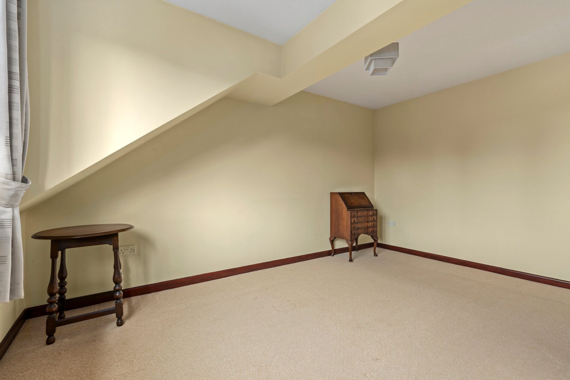 Carpeted double bedroom with space for wardrobes and rear aspect window. Loft hatch access.