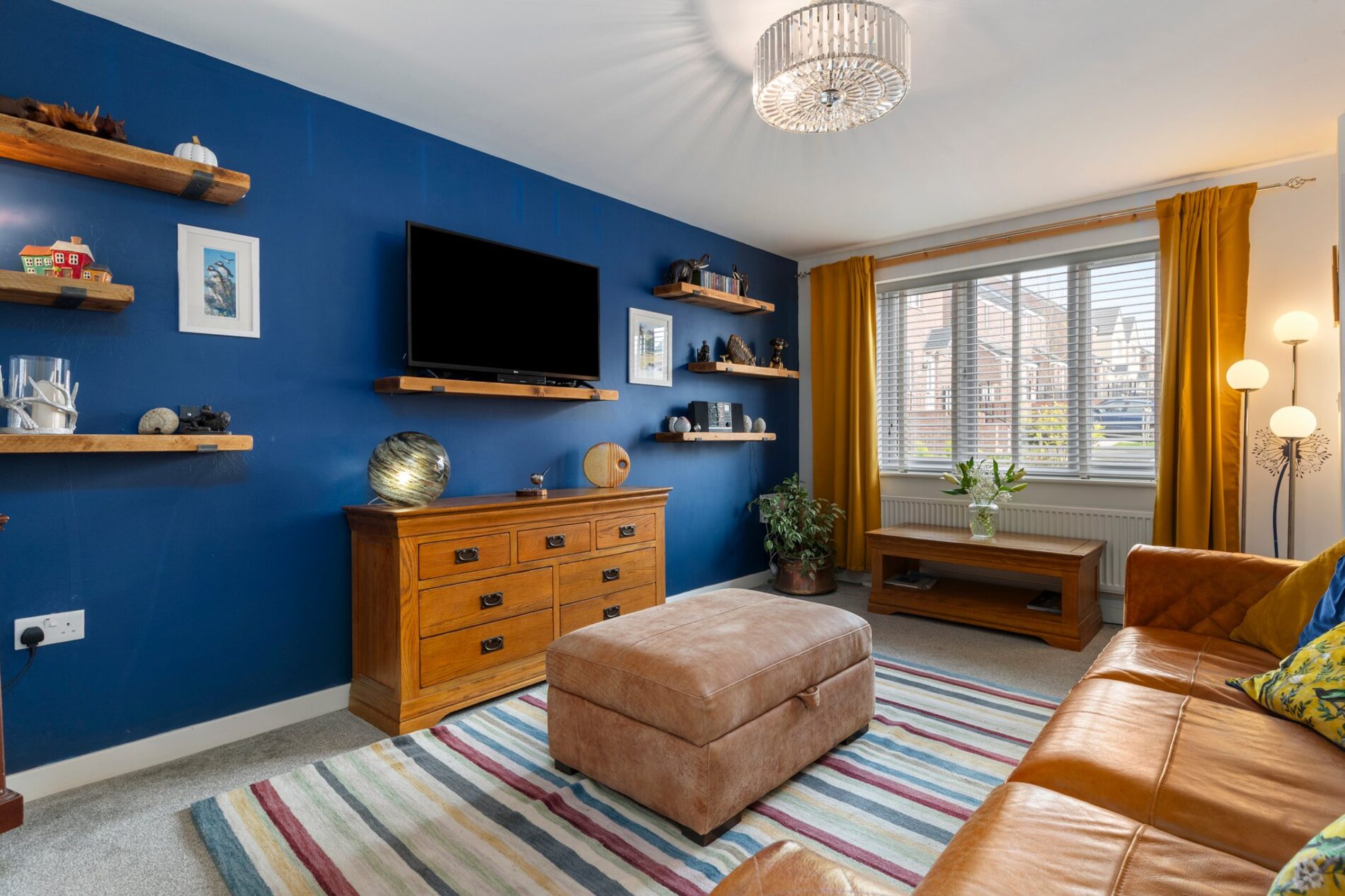 A generous reception room with carpet underfoot. Ample space for a variety of seating options and free-standing furniture, complemented by an integrated under-stairs storage cupboard. A fore aspect window, allows natural light to flow through along with double doors leading to the kitchen/diner.